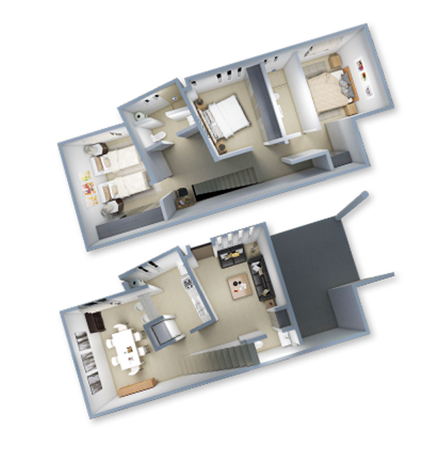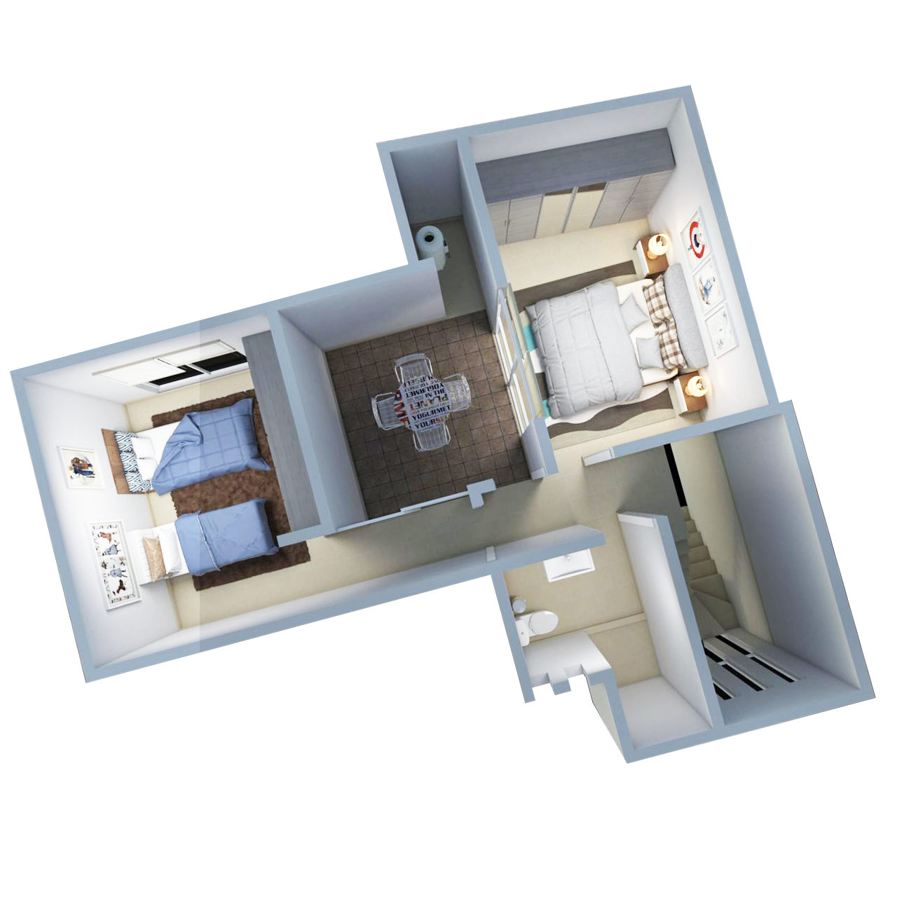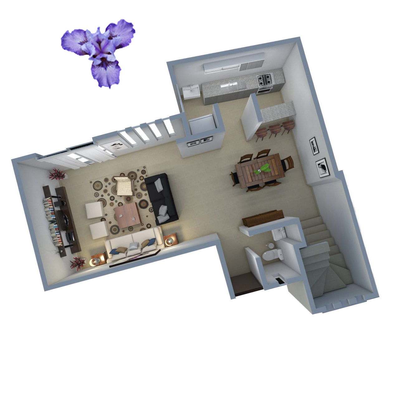 Este modelo posee un especial toque de privacidad para personas que ocupan una habitación en planta baja. Diseñado con un vestíbulo de entrada en la que se integra un amplio conjunto de sala comedor.