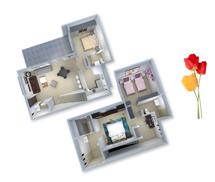 La calidez de los espacios de este modelo proporcionan una especial separación de las áreas privadas y sociales en cuya armonía de diseño se visualiza amplitud de los espacios interiores.